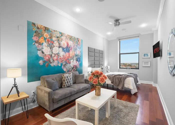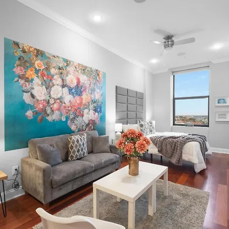 Featuring a private swimming pool, Chic High Rise Apt Lux Loft With Pool,Deck & Gym Philadelphia is a 5-minute walk from One Shot Cafe. This apartment is situated 6 km from Philadelphia, PA train station and a stone's throw from East Girard Avenue bus station.